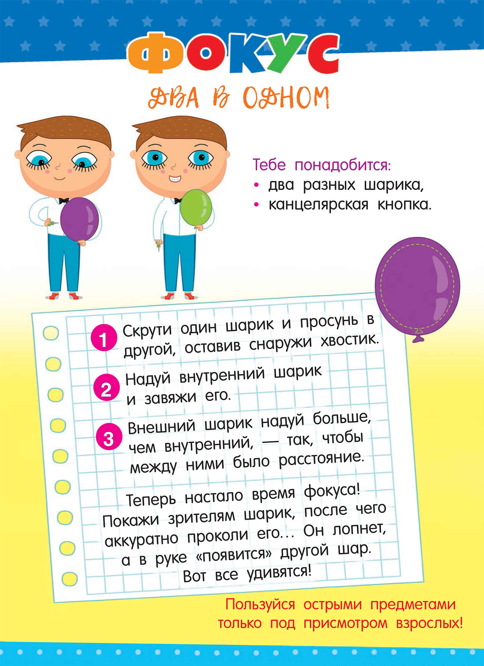 Если фокус будет делать сам ребенок, то не разрешайте ему пользоваться острыми предметами без вашего присмотра.