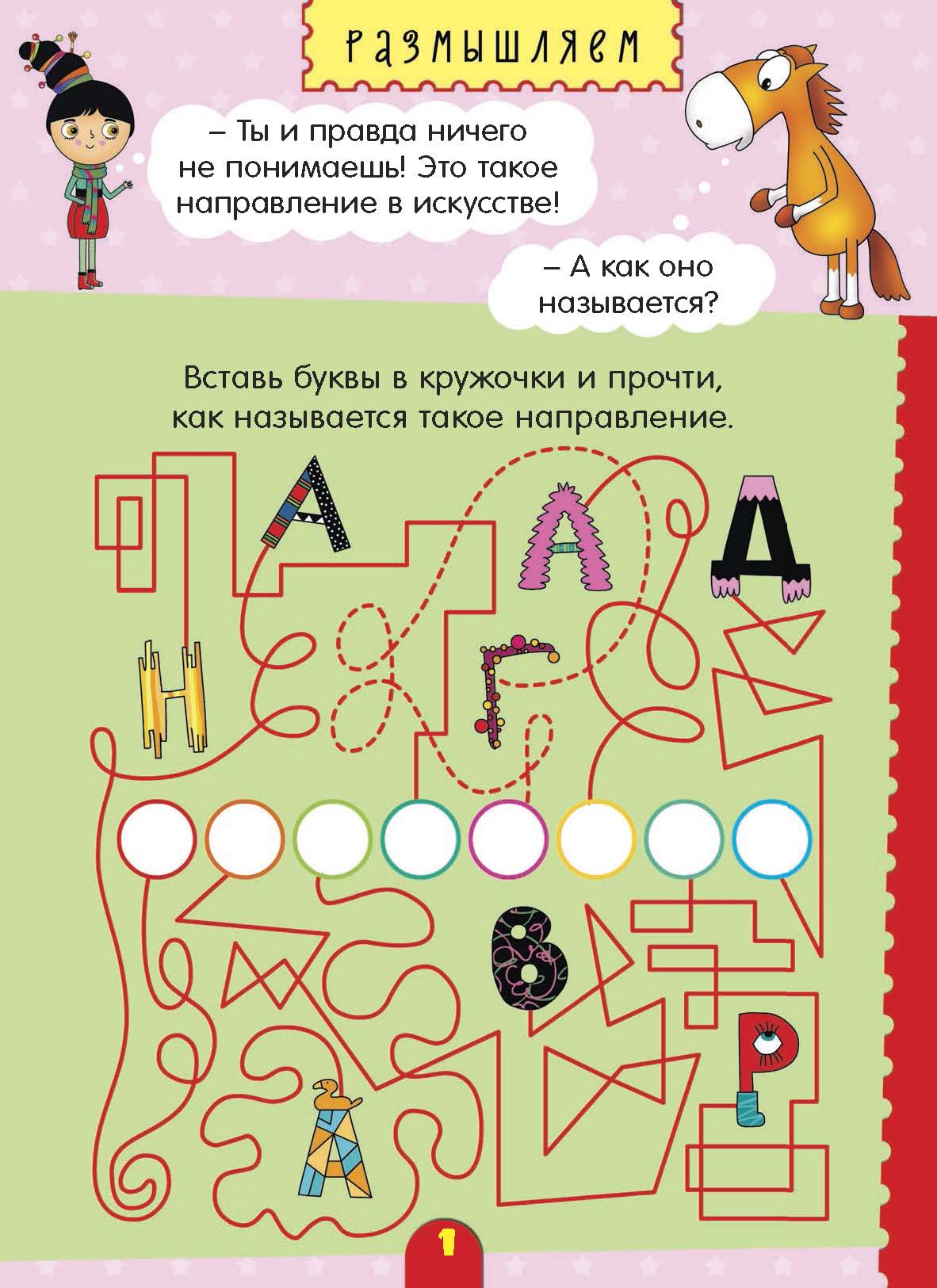 Чтобы начать знакомство с искусством, совсем не обязательно ходить каждые выходные с детьми в музей. Начать можно и дома. ПониМашка знает много способов, как начать разговор об искусстве в доступной и интересной форме. Например, можно пройти наш лабиринт. Здесь каждый путь приводит буквы на свое место. Ребенок не только выполнит задание на внимательность и развитие моторики, но и узнает, как называется современное направление в искусстве. А объяснить ребенку, что же это за направление, поможет наша справка.