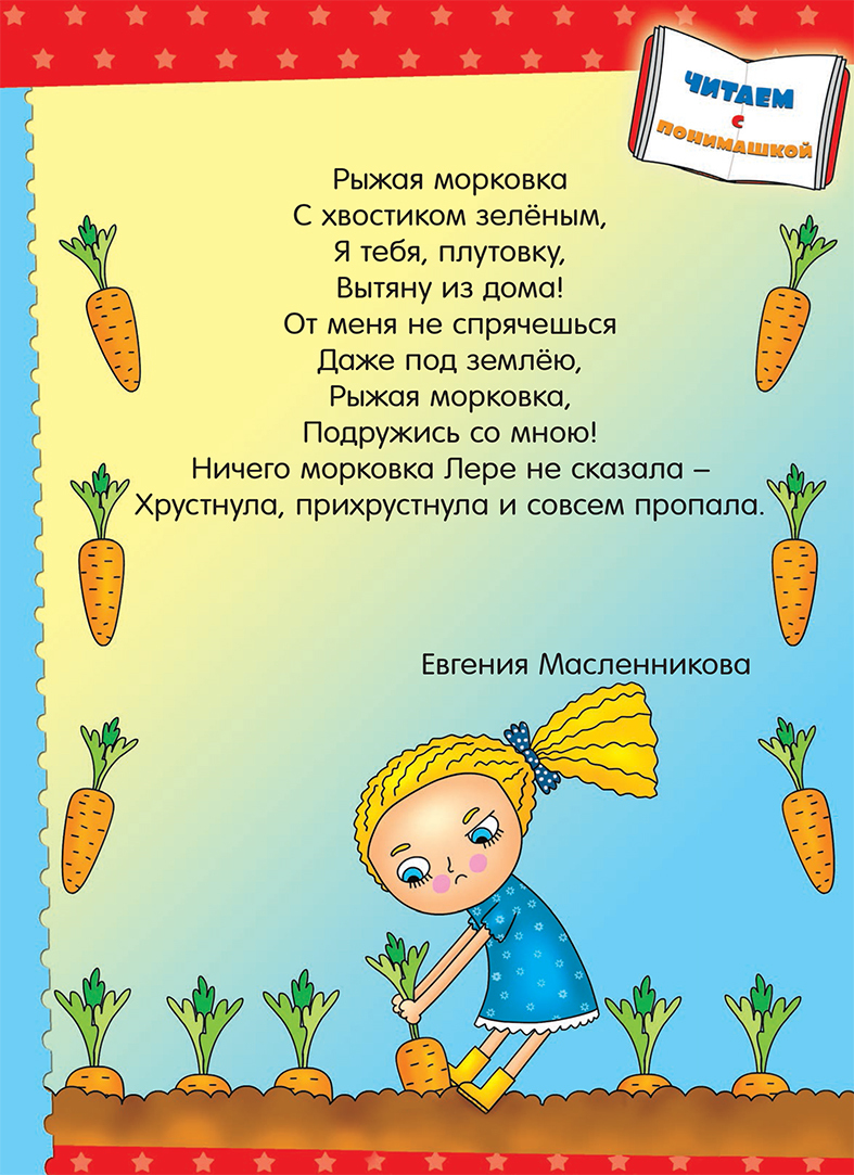 А вы в детстве любили морковку? Конечно! Ведь она богата витамином А и способствует правильному пищеварению и росту. Давайте вместе с ребенком выучим веселый стишок про морковку от Евгении Масленковой: