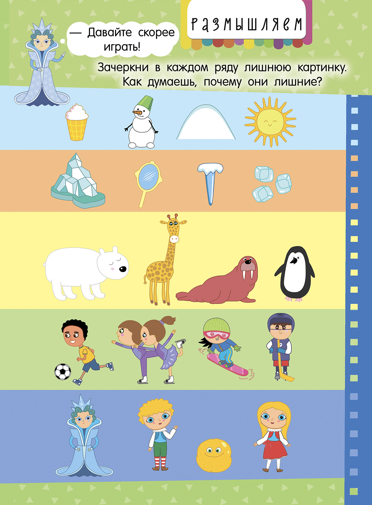 Логические ряды – это популярный вид заданий на внимательность. В каждом ряду ПониМашка добавила по одной лишней картинке. Внимательно изучите с ребенком все картинки и попросите найти лишние. А после попросите объяснить, почему он сделал такой выбор и какой признак общий в каждом ряду.