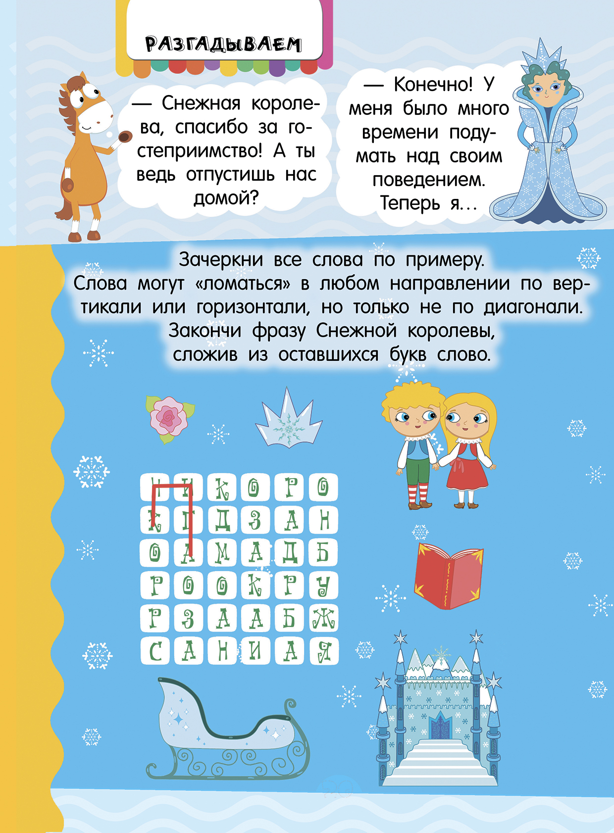 Зачеркните все слова и разгадайте загадку Снежной королевы.
