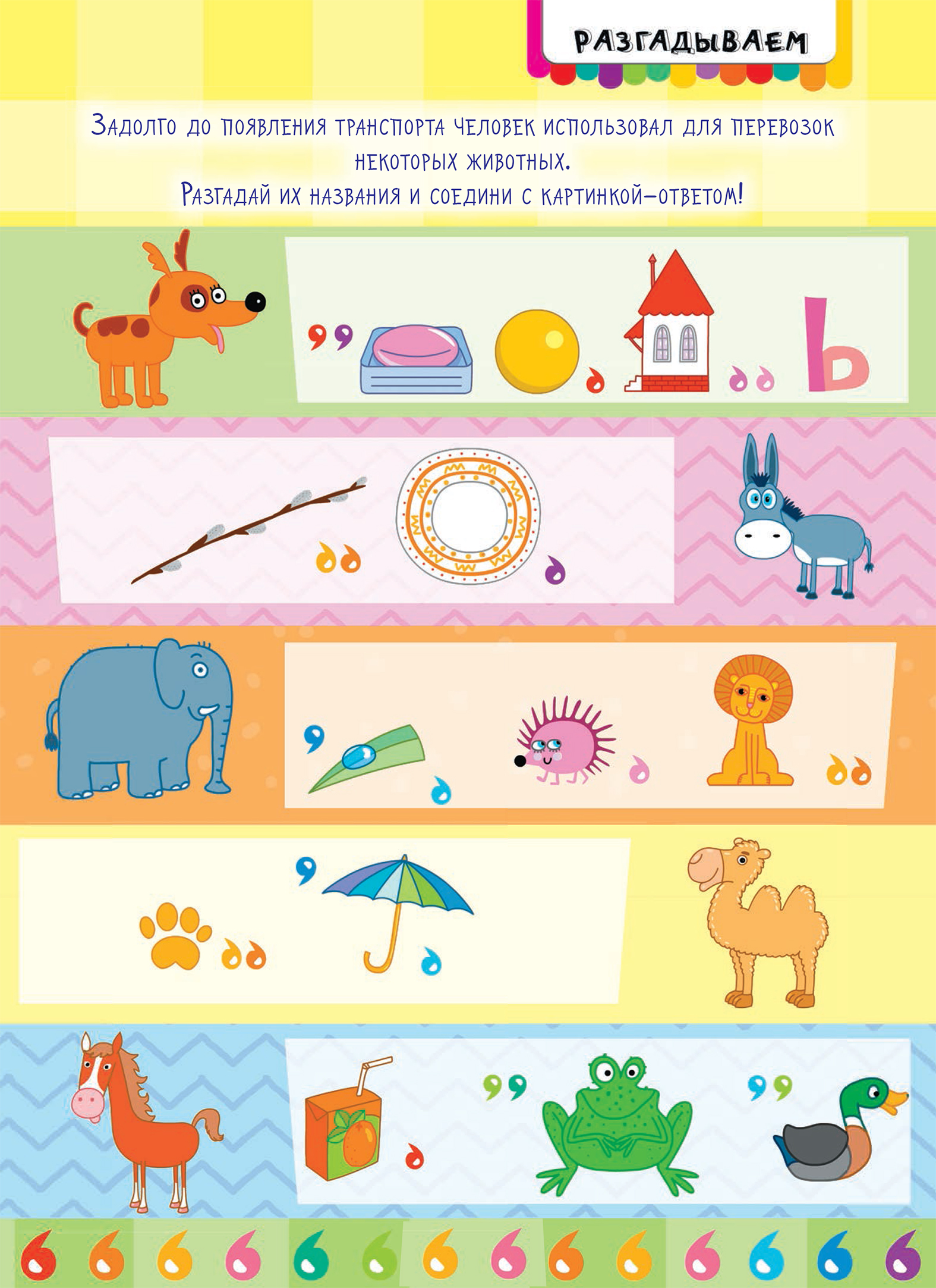Разгадайте название этих животных и соедините картинки с правильным ответом. Обсудите с малышом каждое животное и чем оно может быть полезно сейчас.