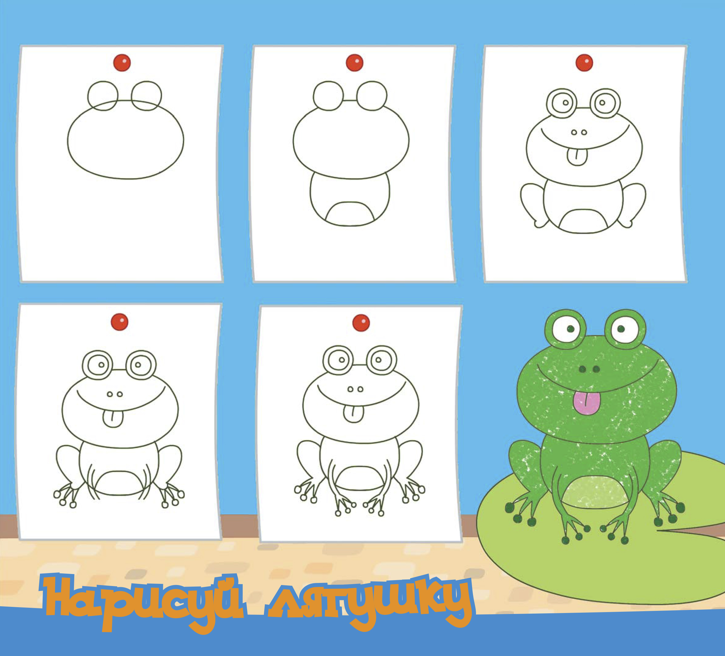 Не все мамы и папы могут изобразить любое животное на бумаге. Но с нашими мастер-классами это будет сделать легко всем, и родителям, и детям. Следуйте пошаговой инструкции на картинке и у вас точно получится лягушка как из сказки. Раскрасьте ее красками или карандашами. А весной не забывайте, что рисовать на асфальте еще увлекательнее!