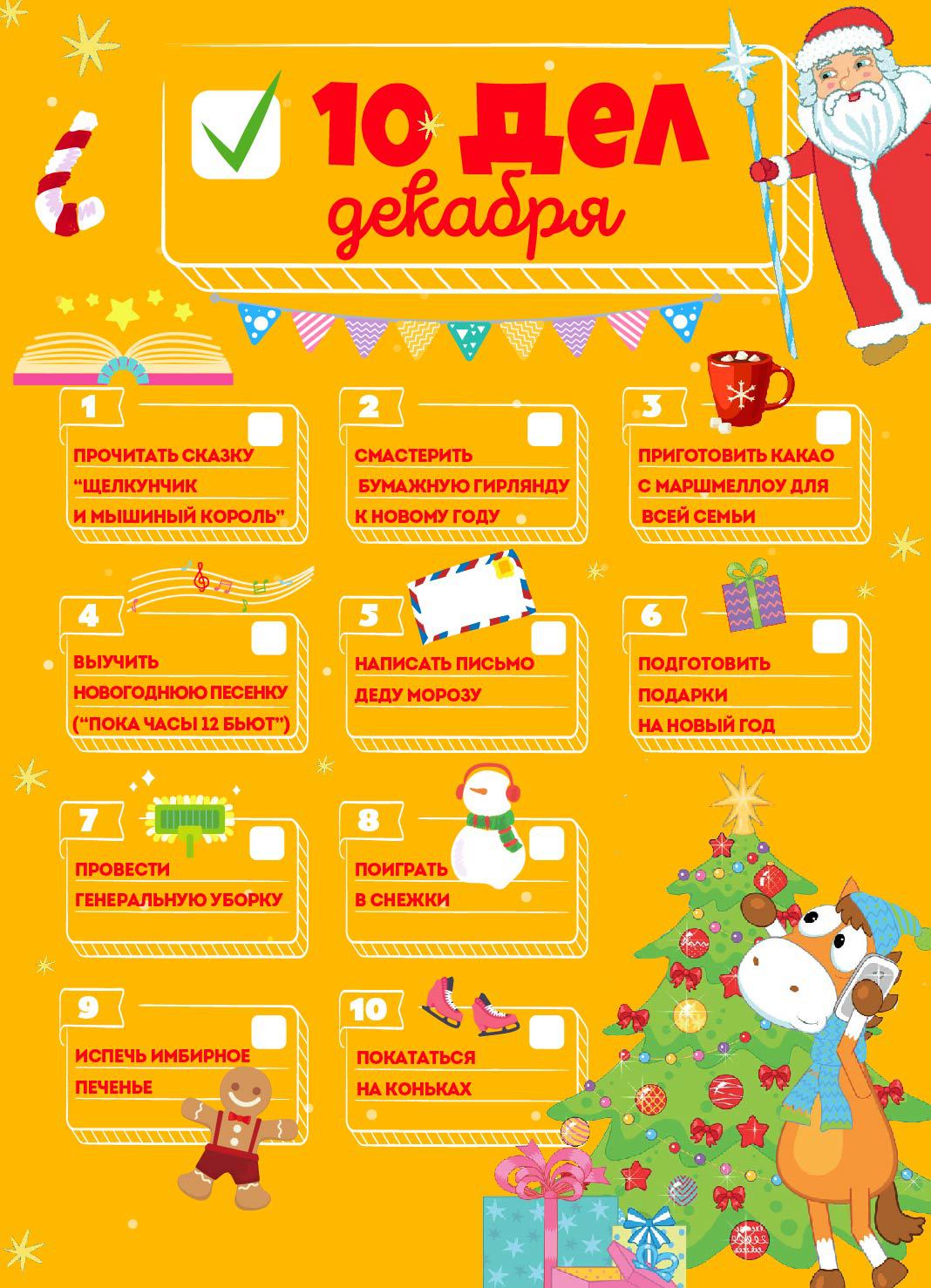 В декабре самое время погрузиться в атмосферу сказки и праздника. А поможет вам в этом наш список дел, где мы собрали идеи для создания праздничного настроения в преддверии Нового года!