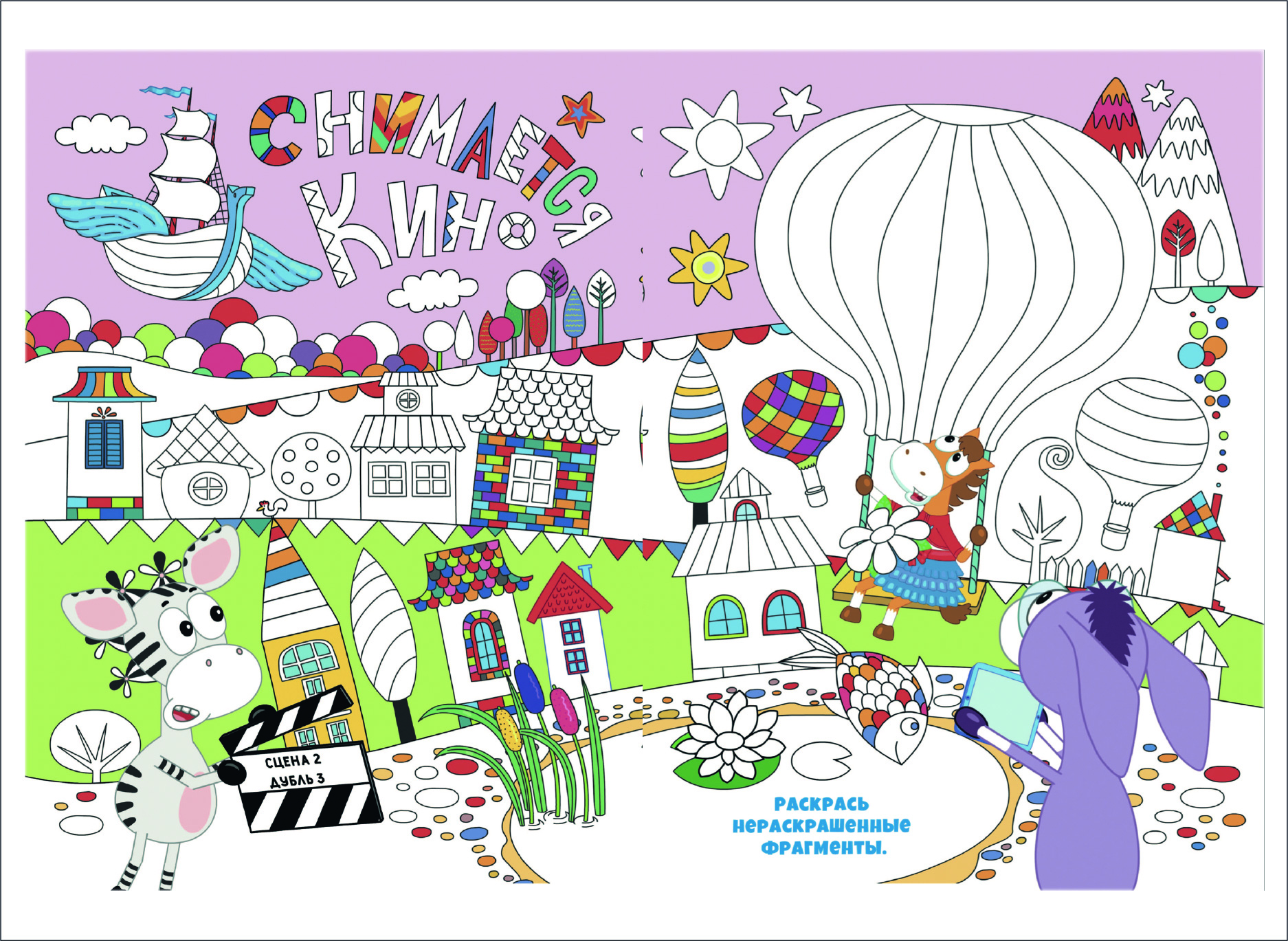 В кино возможно всё, даже летающий корабль. Только вот на картинке явно не хватает цветов. Помоги ПониМашке раскрасить незакрашеные элементы. Распечатайте картинку и дайте ребёнку. Можно использовать цветные карандаши, фломастеры или ручки. Не ругайтесь, если ребенок выйдет за края. Раскрашивание различных элементов помогает сосредоточиться и сконцентрироваться на одном занятии, тренировать усидчивость и руку для письма в будущем.