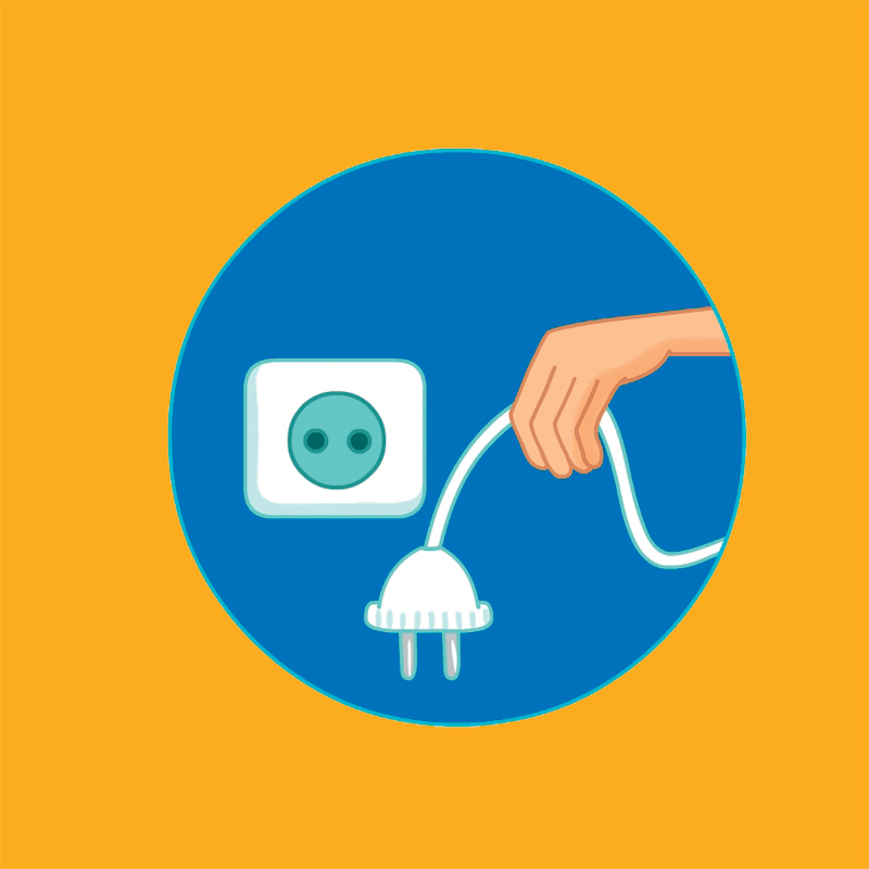 Выключите все электроприборы и осторожно вытащите вилки из розеток.